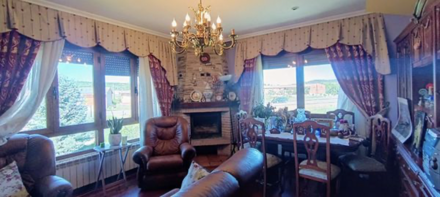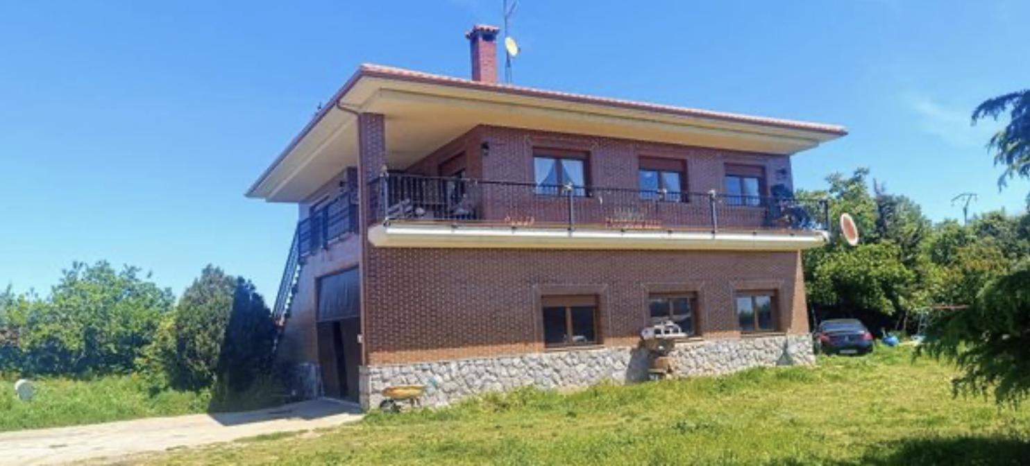 Chalet independiente con una finca de 2500 metros cuadrados, 4 habitaciones, 2 baños, calefacción de gasoil, leña y carbón, chimenea en el salón, espacios amplios y luminosos con muy buenas vistas