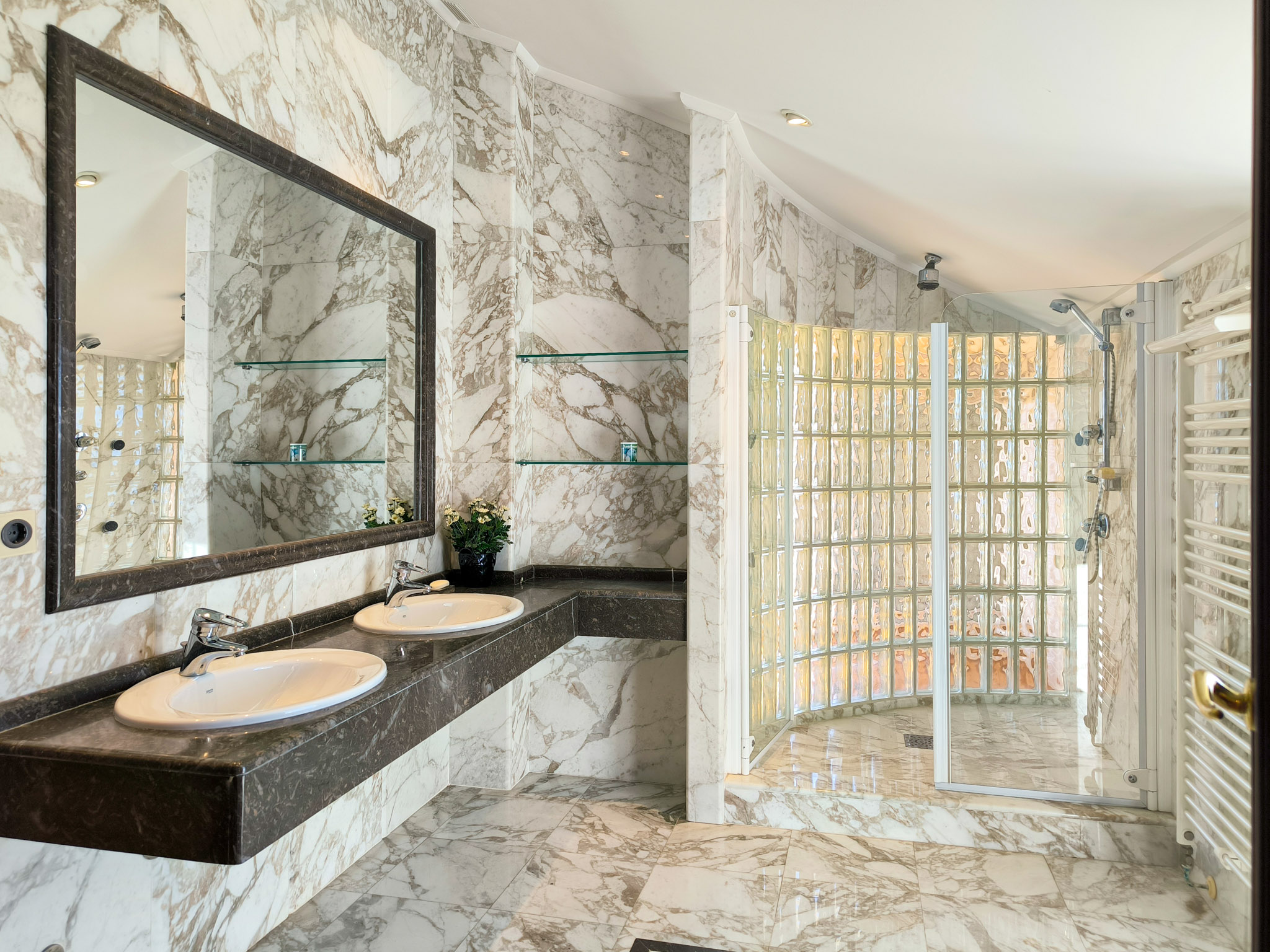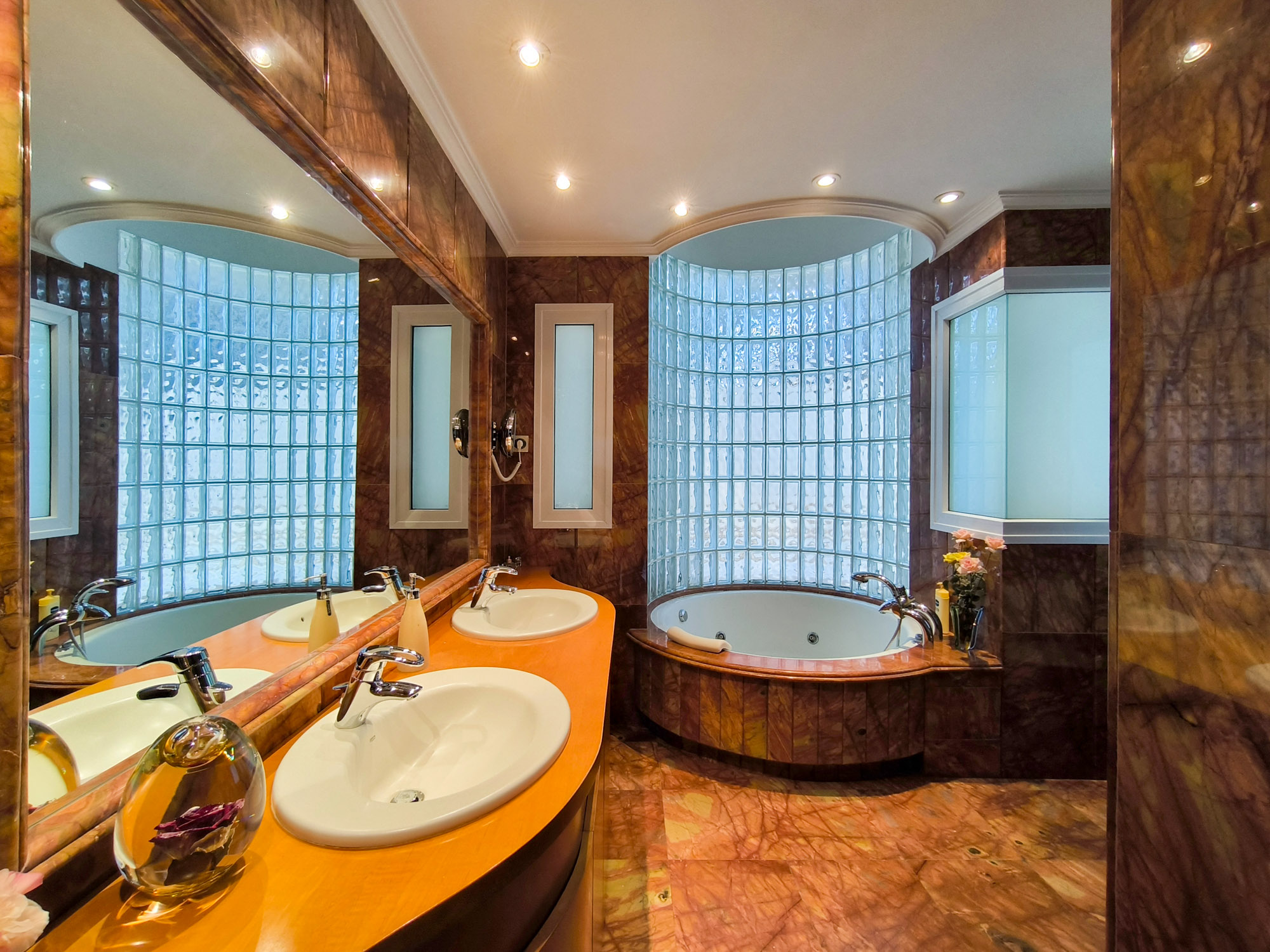 Construida con materiales excepcionales seleccionados en todo el mundo, como mármoles italianos y maderas nobles africanas, con acabados de máxima calidad.