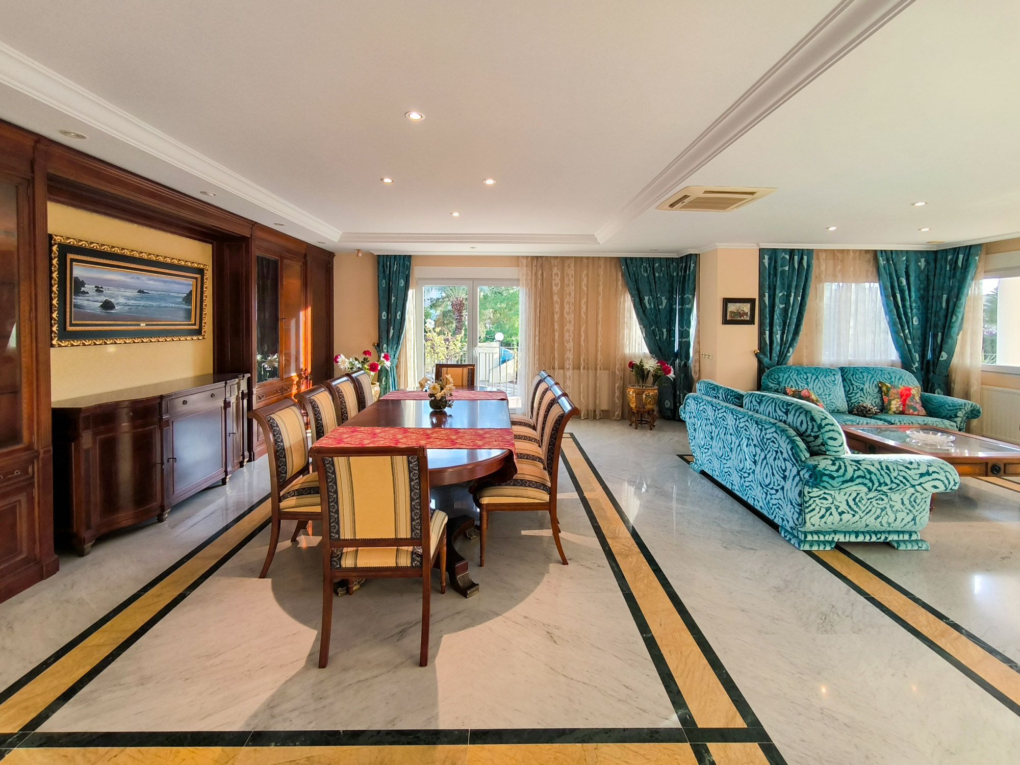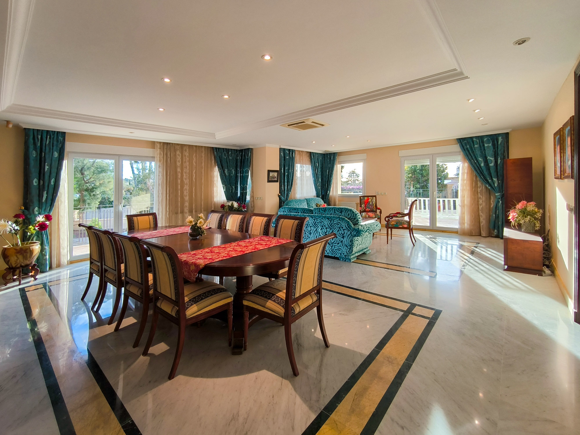 La vivienda cuenta con 8 dormitorios, 8 baños, amplios salones, múltiples zonas de estar y numerosas terrazas.