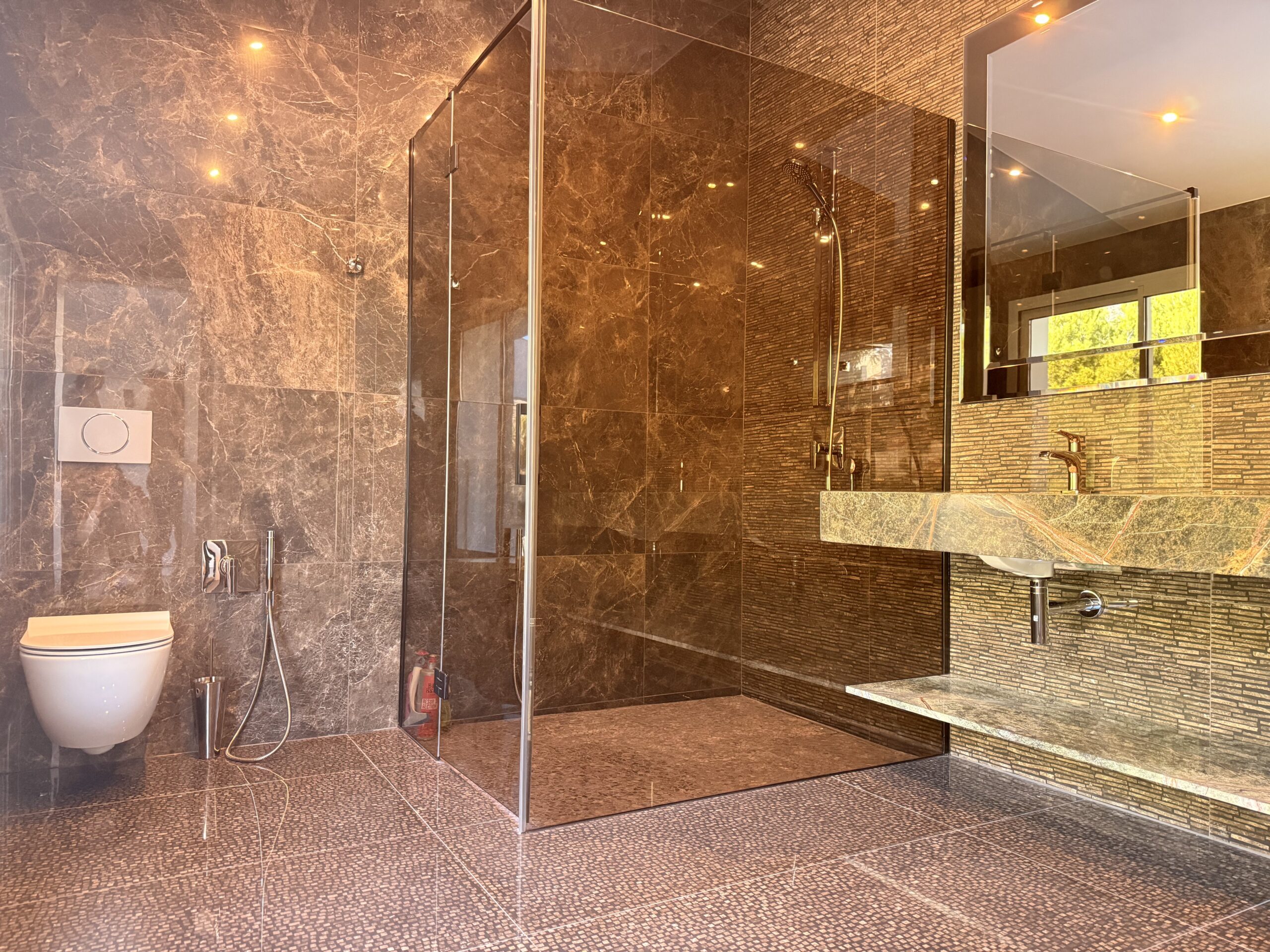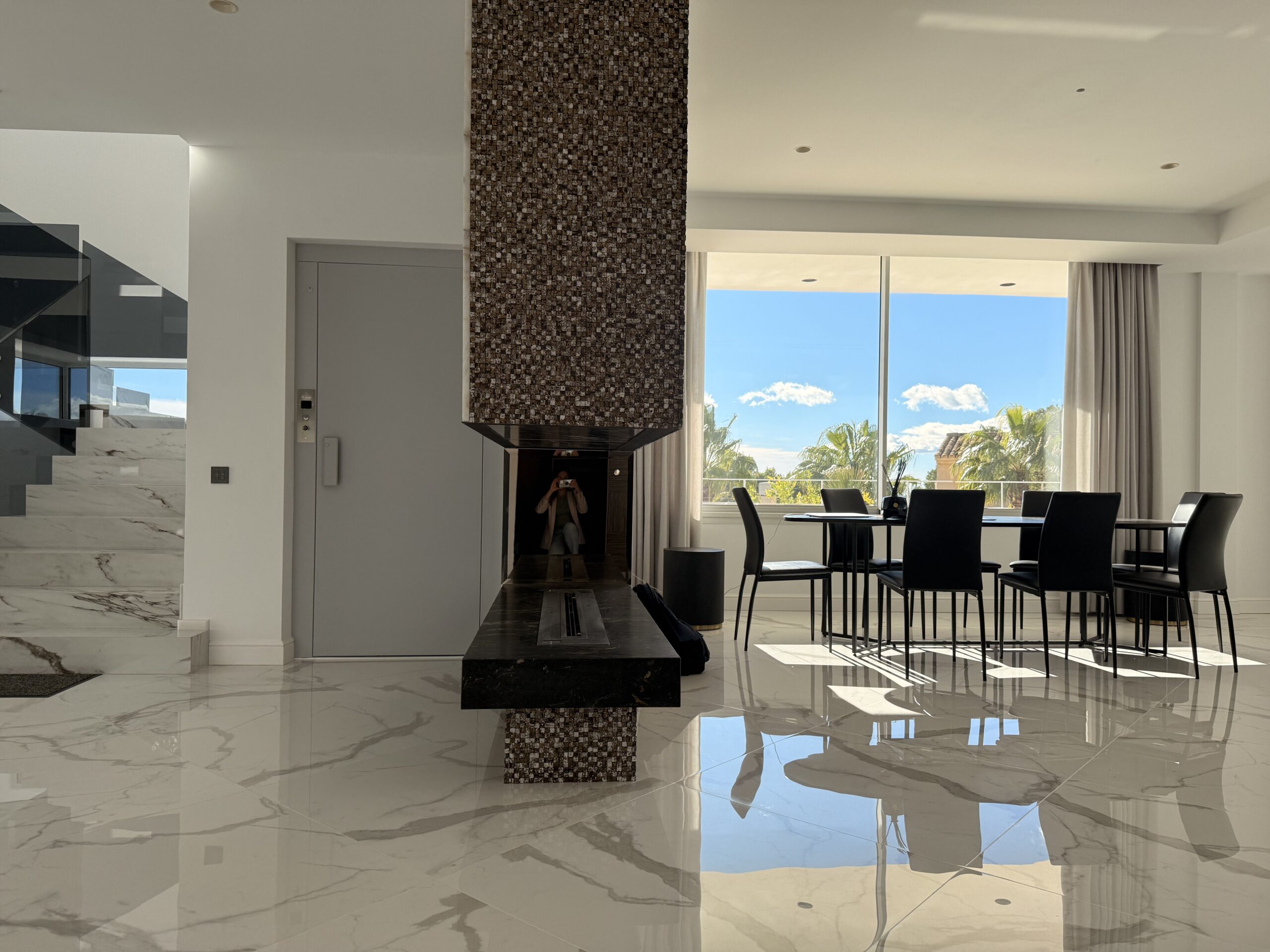 Arquitectura única y materiales de alta gama: mármol, granito, madera natural. Cocina principal Dada (Molteni/Armani) y electrodomésticos Miele y Bosch. Suelo radiante, aire acondicionado Daikin, internet de alta velocidad. Videovigilancia, sistema de alarma y domótica. Chimeneas: una de leña y dos de bioetanol. Zonas de ocio e instalaciones: Complejo SPA: sauna, hamam, cueva de sal, sala de masajes, gimnasio, cine, billar, zona lounge. Amplias terrazas y balcones. Piscina, solárium de madera y jardín subtropical cuidado. Riego automático, robot cortacésped e iluminación eficiente. Suite principal: Ubicada en el ala este, con ventanales panorámicos, dos terrazas, chimenea, un lujoso baño y un gran vestidor.